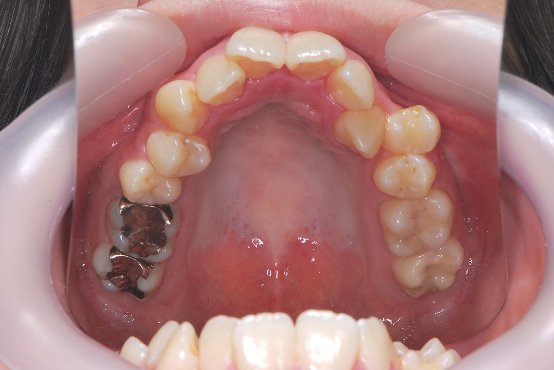 初診時19歳の女性です。上下左右第一小臼歯を抜去し、マルチブラケット装置による治療を約2年行いました。