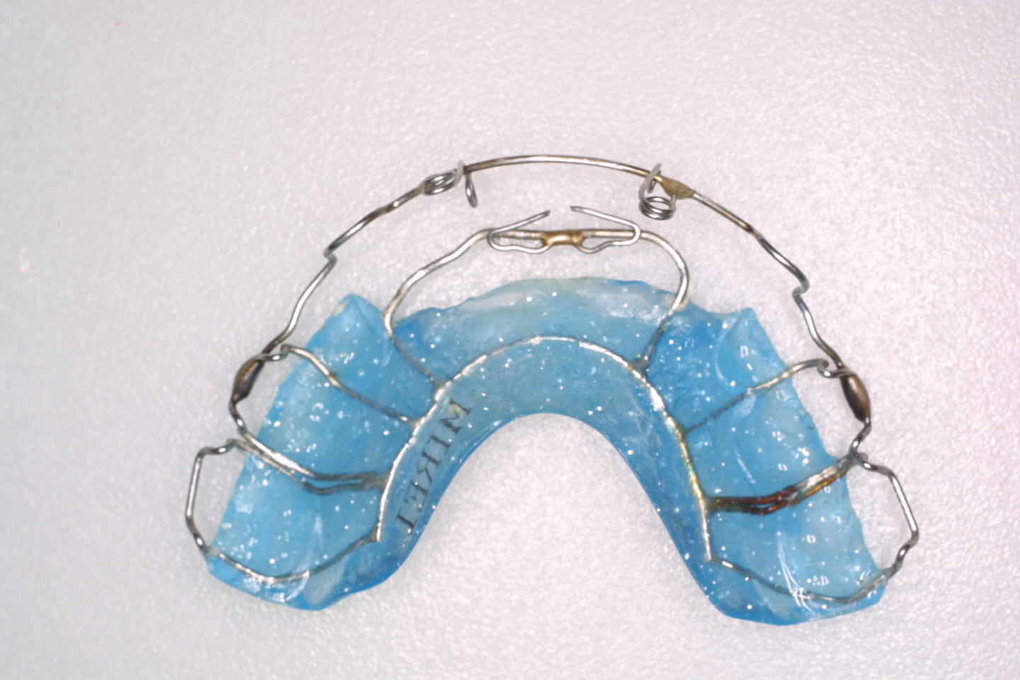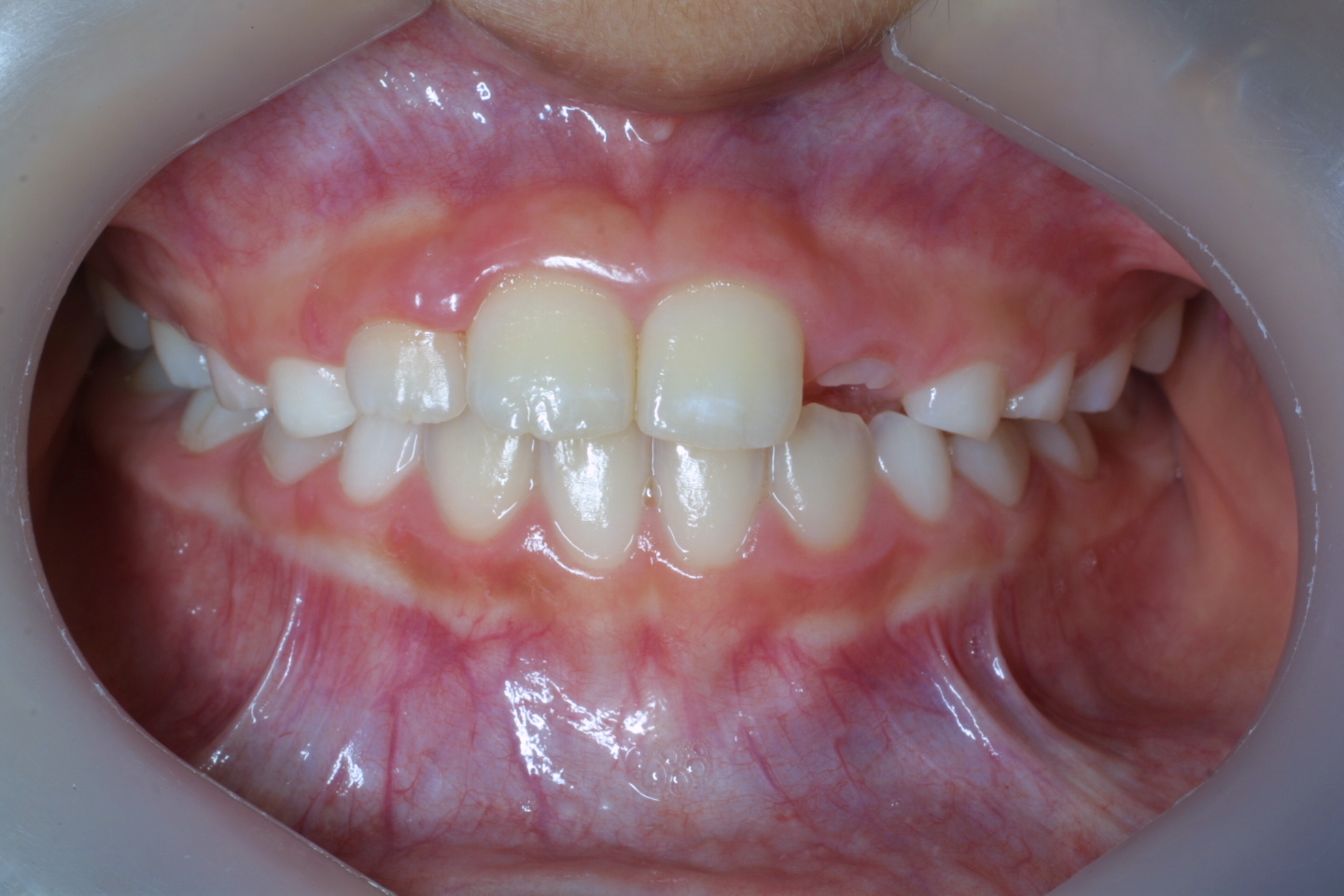 先ずは取り外しの出来る装置を使用して前歯部の反対咬合を改善。