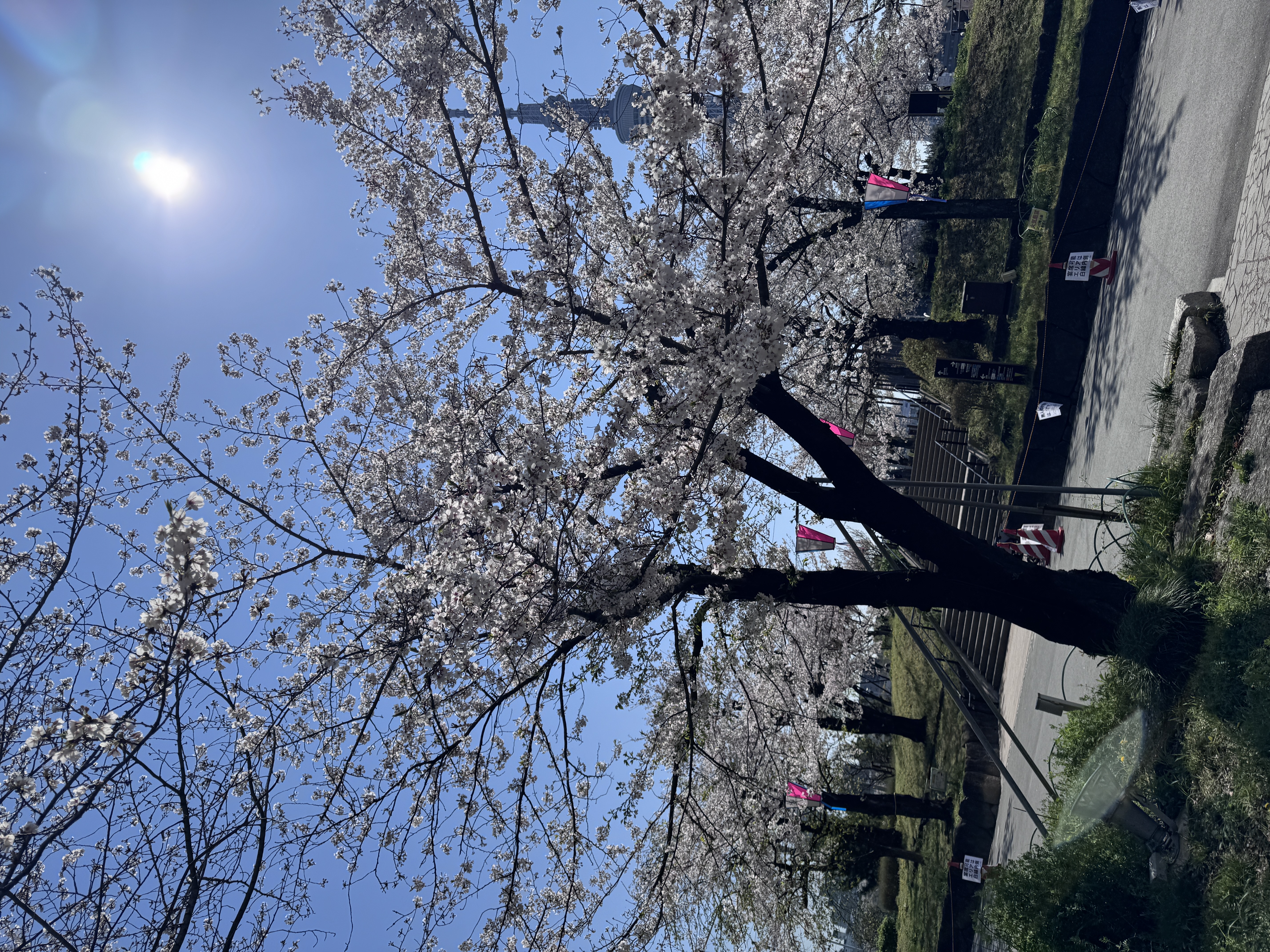 自転車で通勤途中、隅田公園の中を通ります。昨日の雨と強い風ですっかり桜は散ってしまったかなと思いましたが、頑張ってまだ咲いていました。